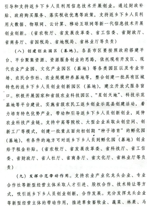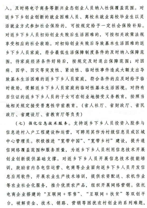 转发省政府办公厅关于支持返乡下乡人员